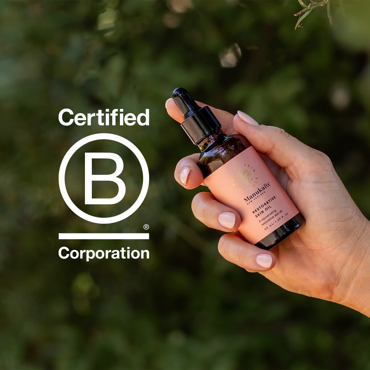 In every bottle of ManukaRx product, you'll find not just the healing power of our mānuka oil, but also the essence of our sustainability BCorp-certified ethos.